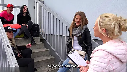 138 Порно видео с Pornovsem - Молодая деваха с подружками болтали на лестнице возле магаза, когда к ним подошел странный мужик с камерой в сопровождении тёлочки средних лет. Она предложила публичный секс в подъезде за деньги и одна из красоток соглашается. Sarah Kay снималась в эротических видео и была участницей XXX шоу с частичным раздеванием, поэтому куколка легко приняла предложение. Сара Кай взяла бабки и нагнулась раком после исполненного минета. Тяночка пикапера тоже принимает участие в совместном порно. Худенькую девицу имеют в письку и заливают густой спермой после окончания похабного действа на ступеньках.